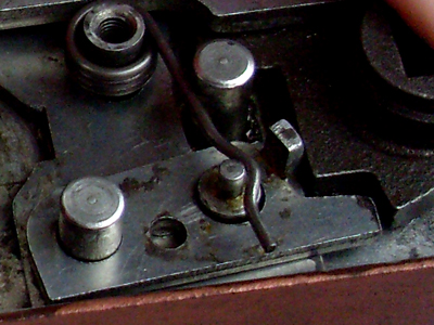 Hier sieht man das Einrastteil (die zwei Greifer) der Schließkrake in ziemlicher Deutlichkeit. (Ich merke eben, daß ich mich mal gesondert darum kümmern muß!)