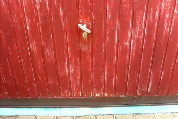 Das Garagentor hat einen Kipp-Mechanismus: Man zieht es an sich heran und drückt es dann hoch.