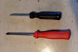Wenn man sich jetzt dieses Gehäuse einmal genauer anschaut, entdeckt man oben eine Aussparung,die genau für einen Schlitzschraubenzieher geeignet ist: