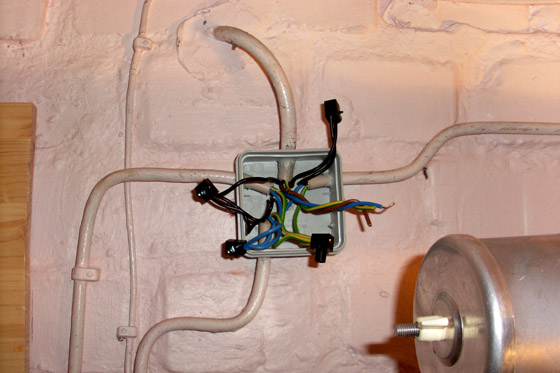 Die Leitung für den Schalter wurde vom Heizungskeller ins Kellertreppenhaus geführt, so daß man dort bequem (und von mir aus in der Not) die Heizung an und ausschalten kann.