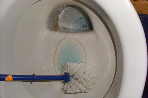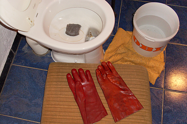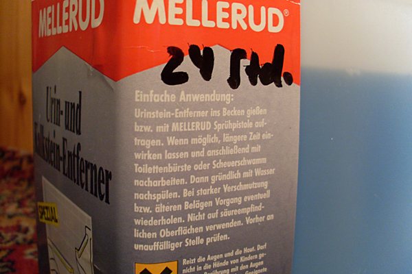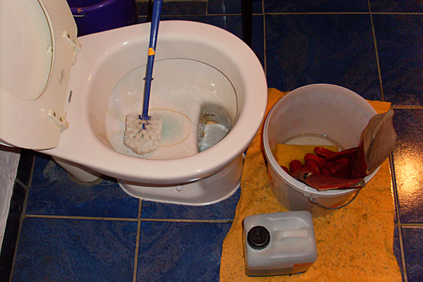Wir haben im Keller ein Klo, das für 3 studentische Einzelmieter gedacht ist. Alle Jahr und Tag braucht dieses Klosett mal eine wirklich richtige Reinigung. Da ich mich bemühe, die Sache gründlich anzugehen, habe ich inzwischen meine speziellen Methoden dafür entwickelt.