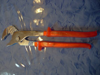 Man nehme einen großen Schraubenschlüssel (oder eine einfache Rohrzange, genauer eine “Wasserpumpenzange”) und schraube die dicke (schwarze) Mutter direkt hinter dem hellen Thermostat-Ventil nach links.