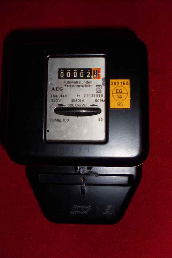1. Falls man die beiden Phasen (hier schwarz mit braun) vertauscht (oder verwechselt), erkennt man das daran, daß der Zähler rückwärts läuft (wird behauptet - ich hab es nicht nachgeprüft). Das wäre ja eine ziemlich einfache Möglichkeit der Manipulation eines Zwischenzählers - oder nicht? (Abdeckung auf, Adern eine Zeit lang vertauschen - dann wieder umstecken. Abdeckung zu. Fertig).